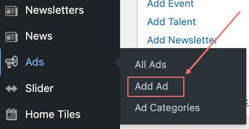 - Featured Image: Upload ad image. Use specs from the web spec sheet.
